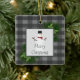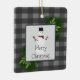 Décorez votre arbre cette saison de vacances avec un ornement en céramique de Buffalo Gris Snowman. La décoration ornementale comprend une boîte ornée de branches de pin et un charmant bonhomme de neige contre un arrière - plan de buffle. Autres cadeaux et objets de vacances disponibles avec ce design aussi.