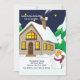 Un design de vacances mignon avec un bonhomme de neige fantaisiste. Il est devant une maison, il est habillé en foulard et en casquette et tient un balai. Conception par Vector.me.