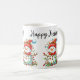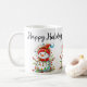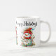 Un motif répétitif d'un bonhomme de neige enchevêtré dans des lumières colorées avec le script "Happy Holidays" écrit en lettres noires rend cette tasse amusante et festive pour la saison des Fêtes.