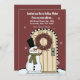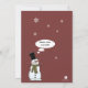 Un décor d'hiver délicieux avec un bonhomme de neige géant habillé en écharpe et casquette à sa porte d'entrée. La porte a une belle couronne de baies et une neige légère tombe.