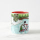 Snowman aime la scène de Noël d'un paddle-board branché. Profitez de votre prochaine boisson chaude de la scène enneigée chaleureuse sur cette tasse.