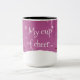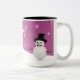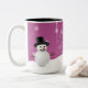 Profitez de votre café matinal pendant la saison des Fêtes avec cette superbe boule de Noël rose Snowman. Le design de la tasse à café met en scène un bonhomme de neige heureux dans une scène hivernale enneigée contre un arrière - plan rose orné de flocons de neige de couleur assortis avec le dicton "Ma tasse de joie". Autres cadeaux et objets de vacances disponibles avec ce design aussi.