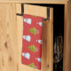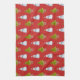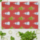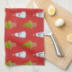 Jolies serviettes de cuisine avec aquarelle bonhomme de neige et arbres de Noël motif sur arrière - plan rouge festif
