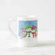 jolie porcelaine, bonne dimension effet brillant bien dans l'ensemble. Le motif et les couleurs sont réussis.Je trouve néanmoins dommage de ne pas occuper tout l'espace avc le motif car la partie rouge au dos de la tasse est trop présente et pas intéressante visuellement.