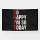 So Happy I'm 50 Aujourd'hui 50e anniversaire bannière à utiliser comme décor de fête ou en toile de fond pour les décorations de table de dessert / buffet ou stand photo. Modifiez la couleur, la couleur de texte ou l'âge de l'arrière - plan pour personnaliser.