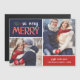 Cartes photos de vacances magnétiques sur mesure abordables avec des modèles simples pour la personnalisation. Ce design moderne offre un mélange festif de typographie en rouge et blanc sur un arrière - plan bleu marine et rouge. Le libellé dit "So Very Merry". Personnalisez-le avec vos photos et ajoutez votre nom de famille et l'année. Utilisez les outils de conception pour modifier le texte, ajouter plus de photos et créer un magnet unique d'une carte photo de Noël.