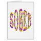 Des lettres stylisées violettes, roses, jaunes et vertes forment le mot Sober dans ce graphique rétro inspiré des années 60