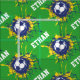 Football répétition football marquer un but motif de crachats dans le tissu de nom personnalisé net. Bleu foncé et blanc avec un jaune éclaboussant dans le but avec votre propre nom en blanc. La couleur Arrière - plan est actuellement verte mais peut être personnalisée selon la couleur de votre choix. Idéal pour les amateurs de football et de football. Personnaliser avec votre propre choix de nom, actuellement lit Ethan. Art et réalisé par Sarah Trett.