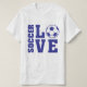 Amour du football, T-shirt de football. Montrez votre amour pour le football avec ce t-shirt de football à la mode! Ce tee de football a un thème d'Amour avec les mots SOCCER et LOVE en grandes lettres bleues en gras. Un ballon de football sert à la lettre O donnant un vrai coup de pied à ce t-shirt de football. Ce t-shirt amusant sur le thème du football fait un super cadeau pour n'importe quel joueur de football ou fan de football qui aime juste une partie de football. Plus de t-shirts de football disponibles en magasin!