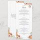 Ce modèle à la carte mariage présente un design floral doux et romantique, avec des fleurs délicates sur les bords supérieur et inférieur. La disposition est entièrement personnalisable, vous permettant d'entrer facilement vos options de repas, les détails des ingrédients ou des notes spéciales pour vos invités. L'arrière du menu offre un espace pour plus d'options de menu, ou un message de remerciement sincère, que vous pouvez personnaliser pour express votre gratitude. Ce design élégant et polyvalent est parfait pour un mariage semi-formel, permettant à vos invités de profiter à la fois de la beauté de la présentation et des informations claires et sur mesure sur l'expérience de la salle à manger.