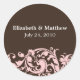 Un doux tourbillon rose sur un arrière - plan marron chocolat. Ces étiquettes autocollants sont parfaits pour personnaliser les sacs de faveur, boîtes de faveur, enveloppes, et plus encore! Customisez facilement vos coordonnées personnelles. Illustration par © Mujka Design