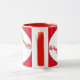 Cette tasse présente des boules rouges et blanches entourées d'un arrière - plan rouge. Le texte dit : "Maman au softball". Customisez facilement le texte pour un fan de sport spécial ou retirez entièrement. Idéal pour la Fête des Mères ou à n'importe quel moment de l'année.