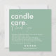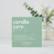 Élevez votre marque de bougies avec ce carte de visite élégant et fonctionnel qui sert aussi de guide de soins aux bougies et de note de remerciement. Doté d'un arrière - plan de lavande douce et d'une typographie blanche propre, cette carte offre des instructions essentielles pour le soin des bougies tout en exprimant une profonde reconnaissance à vos clients. Conçu pour les fabricants modernes et les petites entreprises, il comprend des conseils pour une utilisation sûre et optimale des bougies, un rappel doux pour garder les bougies loin des enfants et des animaux de compagnie, et une invite pour les commentaires des clients. L'agencement élégant et l'esthétique minimaliste en font un encart parfait pour l'emballage ou l'affichage pop-up. Customisez avec votre marque, votre site Web ou votre logo pour créer une expérience client cohérente et professionnelle.