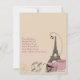 Un arrière - plan rose, avec la Tour Eiffel, un tampon passeport de Paris France, une boussole et deux boîtes vintages à la casquette avec une paire de sandales en paille, voilà l'invitation de cette fête contemporaine. Un design idéal pour une fête ou une fête parisienne ! Le verso de cette invitation contient le même graphique ainsi que du texte personnalisable pour les itinéraires routiers ou toute information supplémentaire que vous devez fournir. Vous pouvez même supprimer le texte si vous le souhaitez ! Beaucoup de texte personnalisable sur le devant pour ajouter vos informations de fête. Économisez en commandant en quantité ! Aussi disponible en d'autres couleurs. Copiez et collez ce lien dans votre navigateur pour visualiser notre gamme complète d'invitations de parties : http://www.zazzle.com/malibuitalian*/invitations