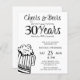 Amusants et informels encouragements et bières budget abordable hommes trente anniversaire carte d'invitation de fête avec un script de typographie sophistiqué, une tasse de bière doodle, et tourbillons de style vintage. ++++++++++++++++++++ Convient à tout âge ou à toute fête d'anniversaire adulte. Facile à personnaliser en changeant l'âge, le nom et les détails de la fête!