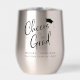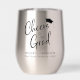 Un tourbillon thermique amusant pour célébrer le diplômé. "Cheers to the Grad" est écrit dans un script moderne avec un grand casquette en haut et vous pouvez personnaliser leur nom, année de classe et école en simple typographie.