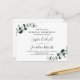 Soirée Eucalyptus Réception Mariage White Invitation... Notre unique invitation à la réception "avant et arrière", de taille carte postale, est composée de feuilles d'eucalyptus émeraude qui bordent votre texte d'information de réception sur un arrière - plan blanc immaculé. La calligraphie chic associée au serif noir et le texte italique expressif créent un look simple classique et élégant pour votre invitation à la réception. Le verso de l'invitation contient votre code QR du site Web mariage ainsi que l'URL du site Web écrit dans le texte afin que vos invités puissent RSVP facilement en ligne et aussi voir les détails qu'ils ont besoin de connaître, y compris les options de repas, les hébergements disponibles, et les sites de registre des cadeaux. Tous les exemples de texte peuvent être facilement remplacés par vos propres informations sur le modèle de personnalisation. Des enveloppes pour cette invitation de format carte postale peuvent être achetées sur la même page.