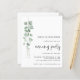 Un rapport qualité-prix BUDGET alternative sur une taille plus petite 4,5 x 5,6" semi-brillant poids 110lbs, qui est d'une épaisseur similaire à une carte postale (cependant ne convient pas à l'utilisation comme carte postale.) VEUILLEZ NOTER qu'il y a UN invitation par feuille. Soirée Mariage Eucalyptus Budget. Style botanique minimaliste à l'invitation de vos invités mariages de soirée. Un script design et moderne pour Sovening Party et le reste du texte que vous pouvez facilement personnaliser. Une élégante branche de feuilles d'eucalyptus aquarelle descend sur le côté gauche.