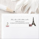 Un arrière - plan blanc, la Tour Eiffel et deux boîtes de casquettes vintages roses avec deux sandales en paille forment le décor contemporain. Un adorable caniche blanc regarde. Customisez complètement le texte sur cette étiquette d'adresse de retour vintage pour répondre à vos besoins.