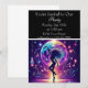 Invitation à la fête Découvrez l'énergie électrique des nuits disco avec cette illustration numérique vibrante. Une danseuse silhouettée prend une pose de célébration, ses cheveux tourbillonnant autour d'elle. Une grande boule disco réfléchissante projette des motifs de lumière colorés dans la scène. Des notes et des symboles musicaux dansent dans l'air, soulignant le thème de la musique et de la danse. Des violets, des bleus et des ors vifs créent une atmosphère festive et énergique. Le style d'art graphique moderne est idéal pour une fête ou une discothèque.