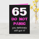 Elle tourne 65 et elle a un bon sens de l'humour, puis cette carte est pour elle. Le numéro 65 apparaît dans les gros caractères sur un arrière - plan noir avec les mots "NE PANIQUENT PAS" ci-dessous droit et alors "vous l'obteniez certainement toujours." Le drôle apparaît à l'intérieur. Copyright Copyright Kathy Henis