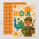 Un joyeux exemple de coupure de papier d’un soldat indien en uniforme vert tenant un fusil, debout fièrement à côté d’un paon vibrant, oiseau national de l’Inde. L'arrière - plan présente des cercles orange et vert vif, un soleil chaud, et un texte audacieux "INDIA" dans les teintes tricolores, symbolisant le patriotisme, la fierté et l'unité. Parfait pour le Jour de l'Indépendance, le Jour de la République ou l'honneur des forces armées.