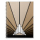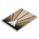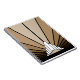 Un motif classique de style art déco. Un motif emblématique du soleil se levant derrière un bâtiment en forme d'art déco stylisé. Un design simple mais élégant, fidèle à l'époque.