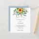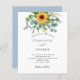 Un arrière - plan blanc à l'avant décoré de tournesols, de verdure d'eucalyptus. Personnalisez et ajoutez vos noms et les détails de votre fête. Bacl : arrière - plan bleu poussiéreux.
