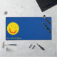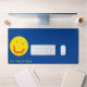 Un soleil jaune aux yeux verts souriant sur un arrière - plan bleu. Customisez en ajoutant votre propre texte. Vous pouvez modifier la couleur du texte et de l'arrière - plan.