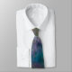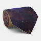 Brillant, cravate multicolore montrant une partie de l'univers infini. Étoile centrale lumineuse et nébuleuses rougeoyantes. Verts, bleus, jaunes, pourpres et rouges.