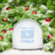 globe de neige avec le drapeau somalien avec le mot SOMALIA ci-dessous aux couleurs du drapeau et avec une étoile blanche et bordée de bleu au centre. Les lettres sont faites comme si elles avaient été découpées en pierre avec une bordure bleue plus foncée que le bleu clair du drapeau. Le drapeau somalien lui-même est une étoile blanche sur un arrière - plan bleu clair. Personnalisez en plaçant votre nom dans l'espace prévu à cet effet. Ou, créez un cadeau en ajoutant le nom de quelqu'un d'autre à la place. Fait un cadeau de vacances réfléchi pour ceux d'ascendance somalienne. Cool de stockage de l'étouffeur.