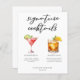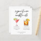 Cette liste sophistiquée de cocktails signature propose une typographie noire simple au-dessus de 2 de vos boissons préférées et leurs ingrédients pour votre bar mariage côtier. Un dessin chic cosmopolite et Whiskey Sour ajoute une touche amusante à votre menu de bar. Complétez avec les noms du couple et la date de leur réception.
