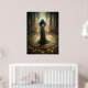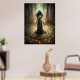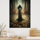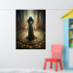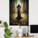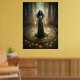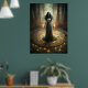 Une sorcière se trouve au sein d'un cercle rituel lumineux, les flammes scintillent et l'énergie pulsant de toutes les directions. Cette affiche gothique captivante évoque des rites anciens, des symboles sacrés et la force brute de la magie lune. Un ajout frappant aux salles de méditation, aux espaces de l'autel ou à la décoration d'Halloween avec une touche féminine foncée.