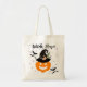 Sac fourre-tout qui a des chauves-souris, un citrouille, un casquette de sorcières et un dicton qui dit "Sorcière, s'il vous plaît !"