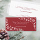 La Carte Plat Joy vous souhaite une saison de croissance est un moyen parfait d'envoyer des salutations de vacances personnalisées à vos clients appréciés. Dans le cadre de la collection Life Coach Red & White Branding Package, cette carte présente d'élégants flocons de neige étoilés sur le devant, sur un fond rouge riche, améliorant la marque de votre entreprise. Le dos offre de l'espace pour un nom manuscrit, ajoutant une touche personnelle à votre message de vacances. Ci-dessous, une note de remerciement sincère et un cadeau spécial de votre entreprise. Sous le nom de votre entreprise, il y a de la place pour votre numéro de téléphone, votre site Web et vos coordonnées. Le long de la frontière inférieure, la carte invitation les clients à "For Daily Affirmations - Follow Us!" avec des icônes de médias sociaux et la poignée de votre entraîneur de vie conclure le salut festif. Pour plus d'inspiration en matière de personnalisation ou d'aide à la personnalisation, visitez le site www.KBMD3signs.com ou contactez-nous à info@KBMD3signs.com pour obtenir des renseignements sur le design personnalisé.