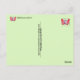 Ce dessin animé de papillon rose vif dit "Je t'apprends" devant. Au verso, on peut lire : "Veux au coeur de la fuite". Tout le texte peut être customisé. Ce papillon capricieux peut élever n'importe quel esprit et alléger l'humeur pour n'importe quelle occasion. Leurs expressions amusantes sont parfaites pour le Merci ou la Saint Valentin ou pour les amusement d'anniversaire.