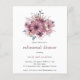 Invitation Au Dîner De Répétition De Florales Violettes. Une alternative économique pour PETIT 4,5 po x 5,6 po. Disponible dans un STOCK SEMI GLOSS 110 lb CARD ou un STOCK SATIN FINISH 80 lb THINNER PAPER. Les enveloppes sont en option. Un bouquet de belles fleurs et feuillage d'aquarelle de Berry et violet est en haut et la typographie stylisée est en dessous qui est facilement personnalisée aux détails de votre dîner de répétition. Un arrière - plan de couleur coordonnatrice est à l'arrière.