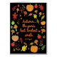 Design automne/hiver avec feuille, citrouille, glands, pommes, baies, pinecones et champignons. Citation de W.C. Bryant.