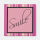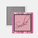 Cet aimant inspirant présente différentes nuances de rayures roses comme un arrière - plan, avec un carré rose surligné de noir sur le dessus. Le mot Smile est écrit sur le carré dans une police élégante scriptée. Cet aimant est parfait pour égayer n'importe quelle surface frigidaire ou aimant et vous rappeler de sourire! Grand comme un petit cadeau ou un gage d'appréciation!