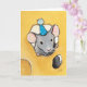 Une petite souris grise mignonne portant un chapeau de fête à pois bleus et blancs sort la tête d'un trou dans un morceau de fromage sur cette carte de vœux adorable. Vierge à l'intérieur. Idéal pour toutes les occasions, y compris les anniversaires. Créé à partir d'une peinture originale © 2009 Lisa Marie Robinson