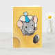 Souris dans un chapeau de fête bleu - Carte de vœu