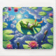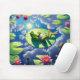 Une grenouille verte vif est confortablement allongée sur un tapis de nénuphars, trempée dans les rayons du soleil au milieu d'un étang tranquille parsemé de fleurs de lotus roses
