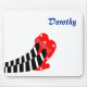 Pantoufles rouges de rubis d'Oz sur un tapis de souris d'ordinateur de sorcière. Ajoutez du texte ou laissez vide.
