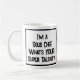 Drôle slogan sur une tasse de café qui dit "Je suis un sous-chef. Quel est VOTRE super talent ?" Café Mug pour un sous-chef. Texte en gras noir et blanc.