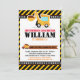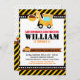ATTENTION ! En construction ! Célébrez votre fête d'anniversaire de construction avec notre Invitation de la Fête de la construction. Cette invitation à la construction comprend une grue, un camion de saleté et un camion de bétonnière sur bandes jaunes et noires. Parfait pour votre petit constructeur en construction la fête d’anniversaire ou un bébé est en baby shower de construction.