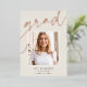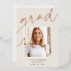 Customisez ce faire-part chic de graduation avec une photo de carré superposée sur le mot "GRAD" en écriture de feuille d'or rose, avec votre nom, l'école, et l'année de graduation. Ajoutez une photo supplémentaire et un message personnel à l'arrière.