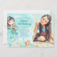 Douce invitation d'anniversaire de sirène sous la mer. Retournez notre invitation pour voir un fond bleu coordonné pour un effet spécial supplémentaire.