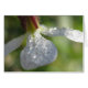 Belle carte blanche avec une macro photo d'une minuscule fleur blanche recouverte de petites gouttes de rosée.
