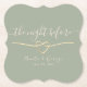 Définissez le ton de votre célébration de pré-mariage avec ces sous-verres en papier élégants pour le dîner de répétition. Avec un fond vert sauge chic, un cœur de corde dorée romantique et un script élégant indiquant « La veille », ce design élégant est parfait pour les cocktails ou les réglages de table la veille de votre grand jour.