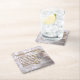 Sous-verre soda sale blanc et or avec recette de gâteau de mariage pour votre réception de bar à soda sale.